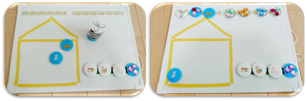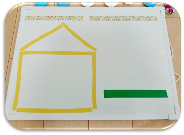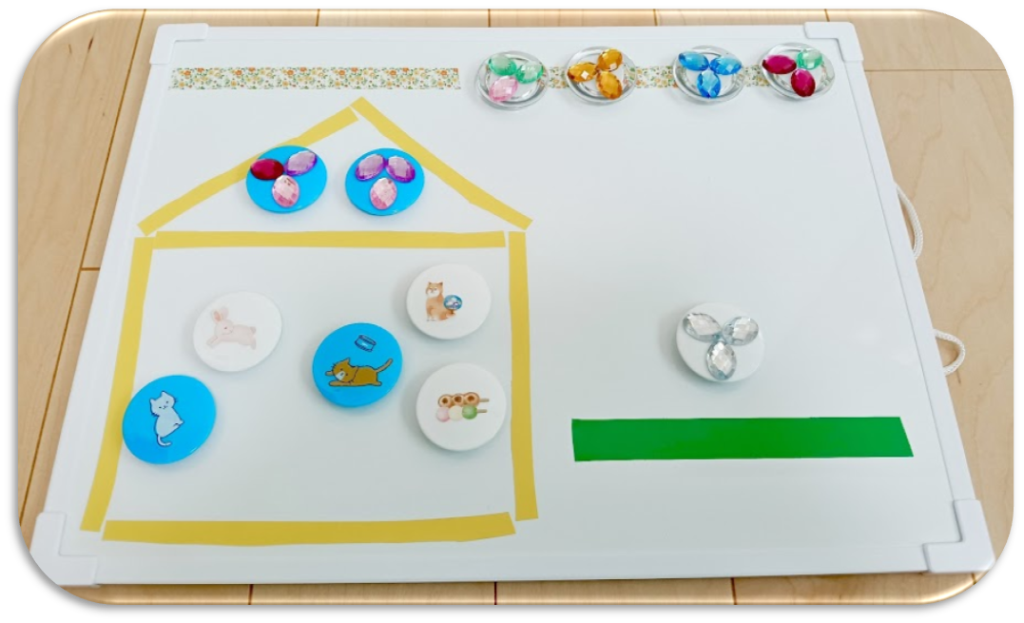目印のようになり、枠の中に入れたり、線の上に置いたりと、子どもなりに考えて遊ぶ姿が見られました。