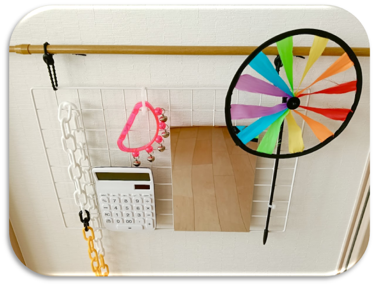 ワイヤーネット、電卓、チェーン、ミラーシート、スズ、風車、結束バンド