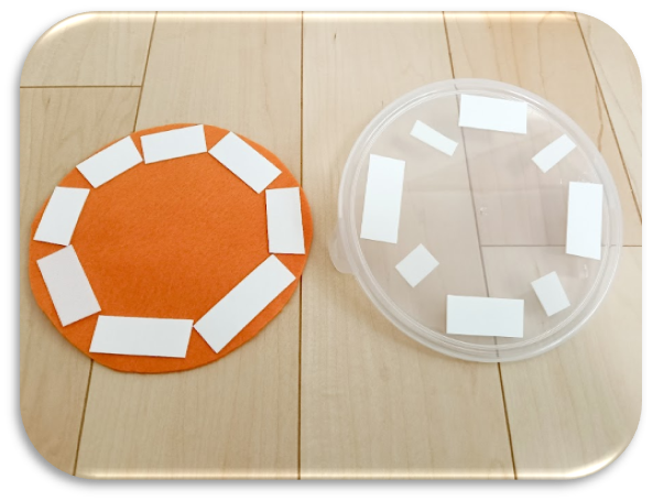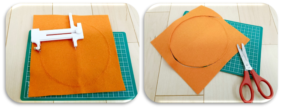 1.フェルトをボウルのフタの大きさに合わせて切ります。