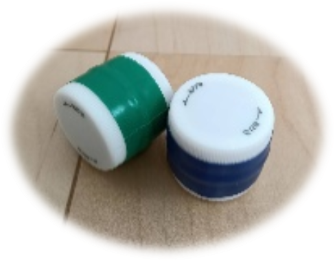 ペットボトルのフタをビニールテープでつけるとぽっとん落としのアイテムが増えて遊びが広がりますよ。