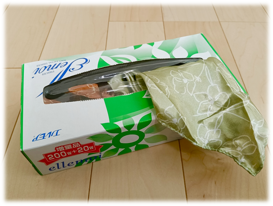 スカーフ2枚と、空のティッシュ箱